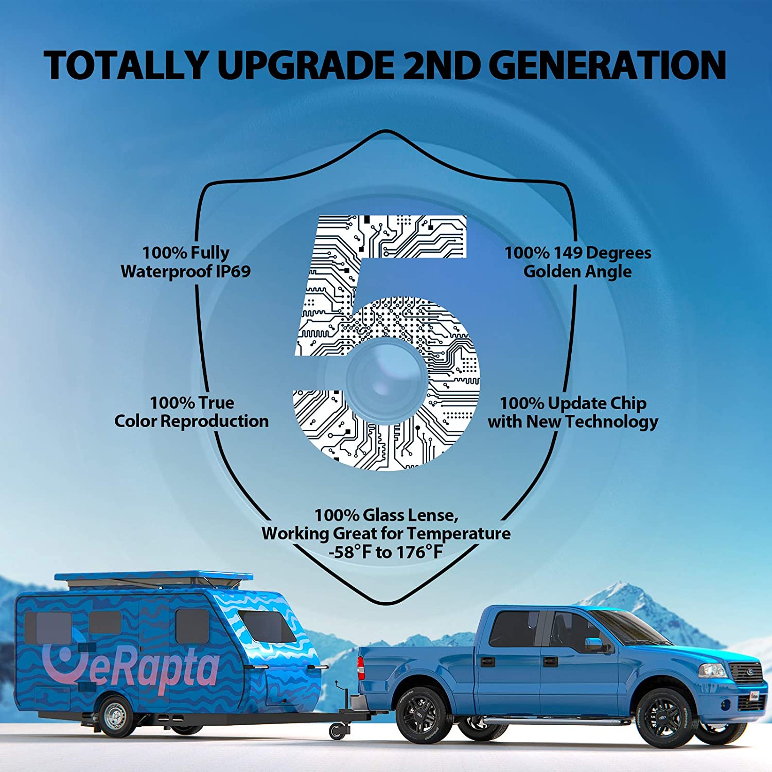 Cámara de Respaldo eRapta A5I, Monitor de 5” 1080P, Impermeable IP69, Sistema de Cámara de Respaldo para Carro/Camión/Remolque/Minivan