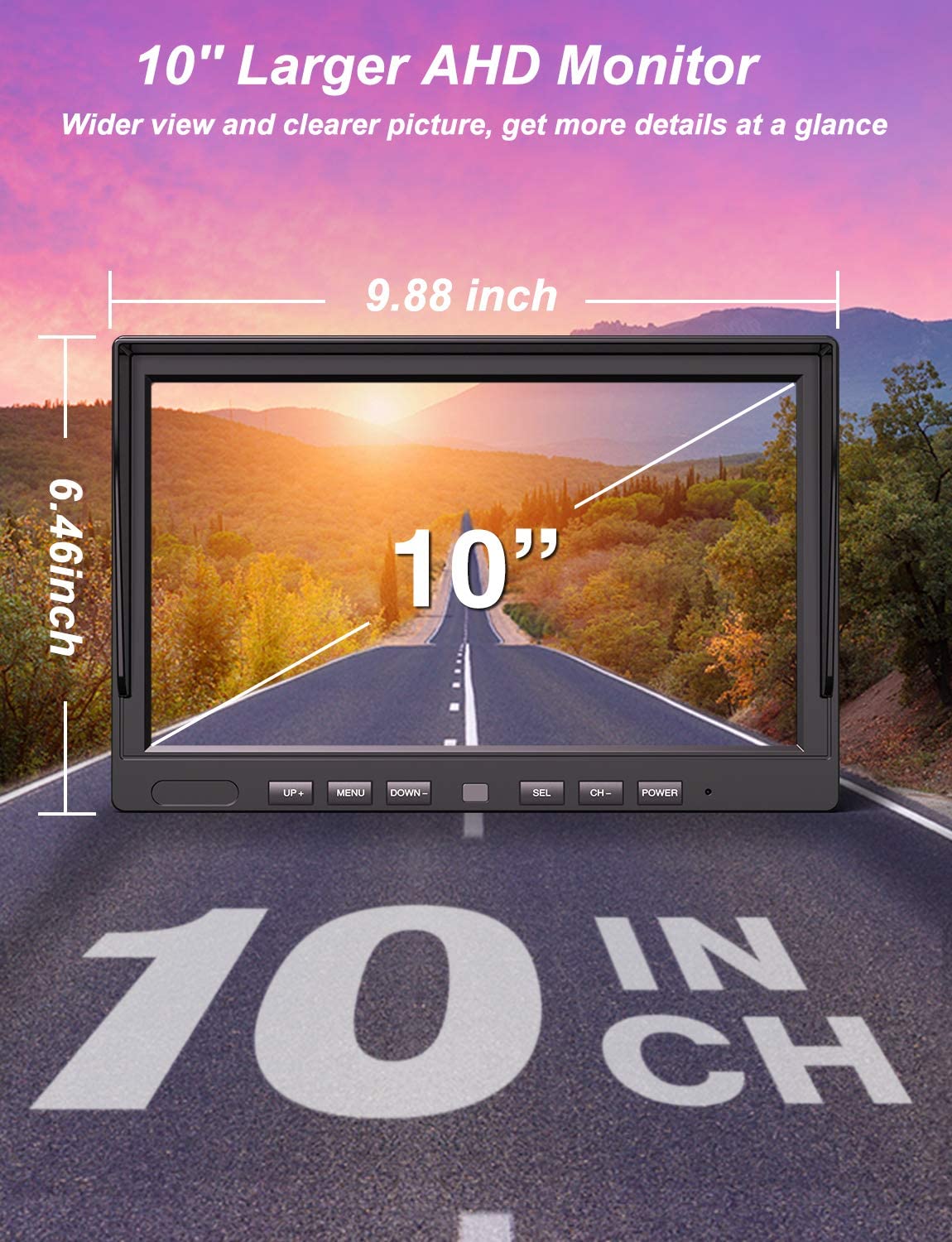 - Monitor grande de 10'' mejorado eRapta: Este sistema de cámara para automóvil es un sistema de cámara de respaldo especialmente mejorado para conductores de camiones. Generalmente, la conducción a largo plazo cansa al conductor, pero la gran pantalla de 10 pulgadas le ayudará a obtener mejores imágenes y visión de un vistazo. Haciendo que la observación del conductor sea tan simple y relajante como ver la televisión en casa.