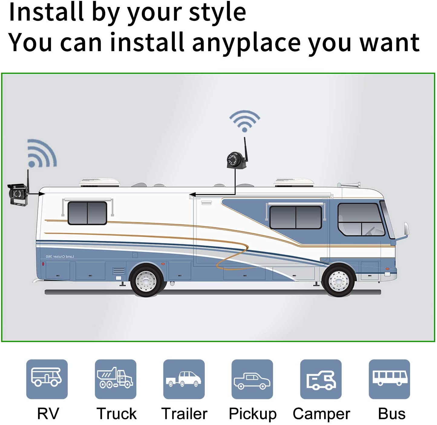 - Compatibilidad común: Este kit de cámara de visión trasera para automóvil se adapta mejor al rango de voltaje de 12-24 V CC, es universalmente compatible con diferentes modelos de automóviles, camiones/autocaravanas/camiones/furgones/semirremolques/remolques/caravanas/autocaravanas de servicio pesado/tractores/autocaravanas/furgonetas de quinta rueda.
