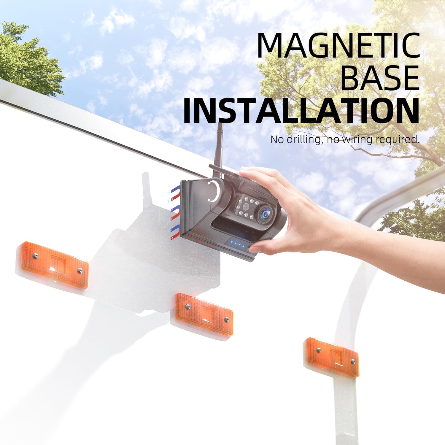 - Instalación súper fácil: Sin cables, sin taladros, la cámara se puede fijar a cualquier superficie metálica. Su diseño verdaderamente inalámbrico permite retirarla y reinstalarla fácilmente en otros vehículos o lugares. El potente imán y la base recubierta de goma suave evitan arañazos en la pintura al retirar o instalar la cámara en otros vehículos.