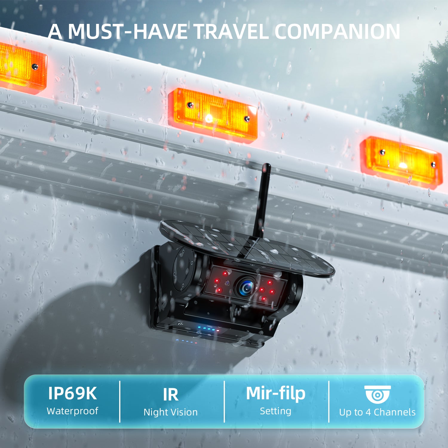 - IP69K with Multi-channels: The camera is durable enough with IP69K waterproof to work in any weather, any place. The touchscreen is with multi-channels, and up to 4 cameras can be connected (2 camera included)
