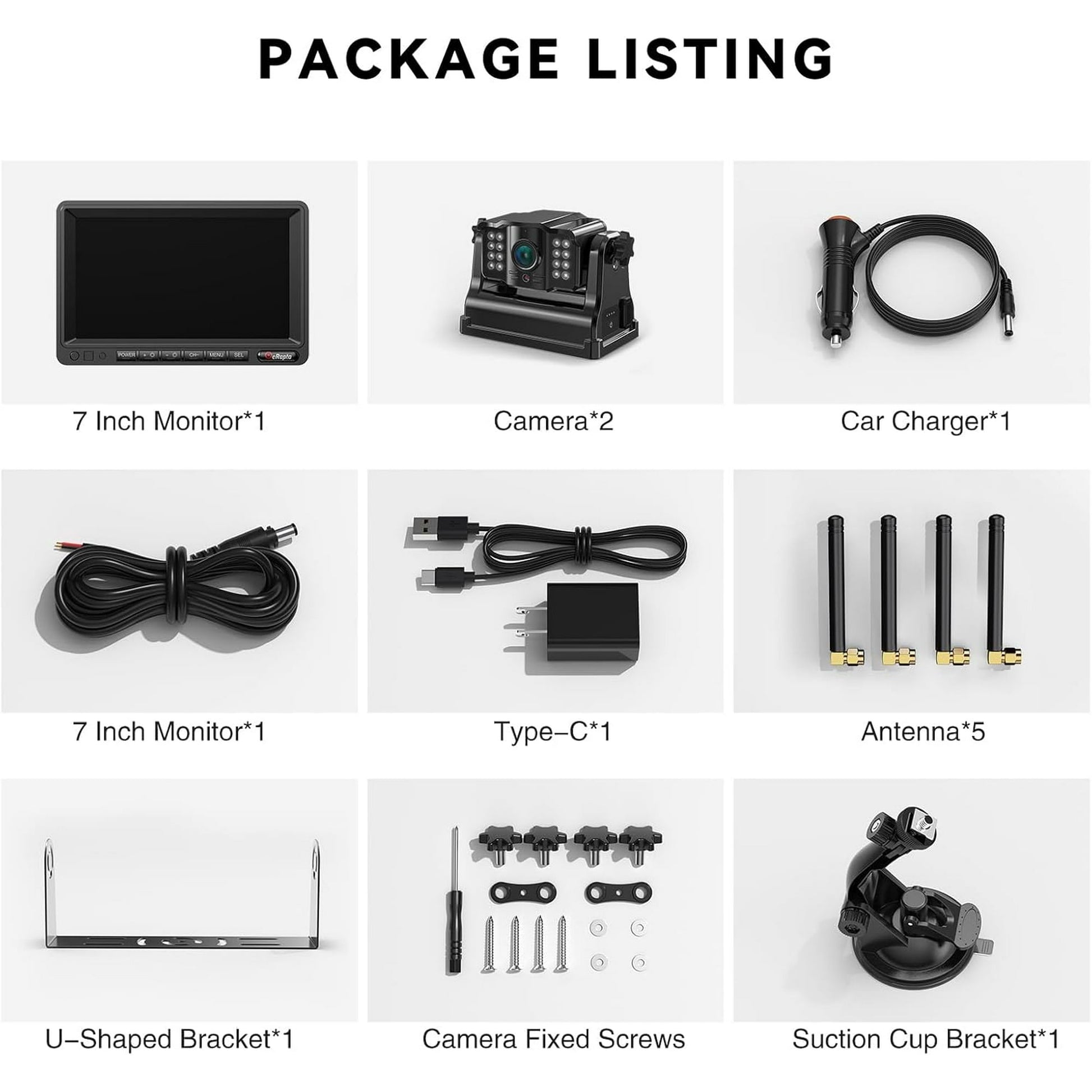 Cámara de visión trasera inalámbrica magnética eRapta con monitor de 7 pulgadas para coche, camión, caravana, remolque, enganche, quinta rueda, con impermeabilidad IP69 ACT702