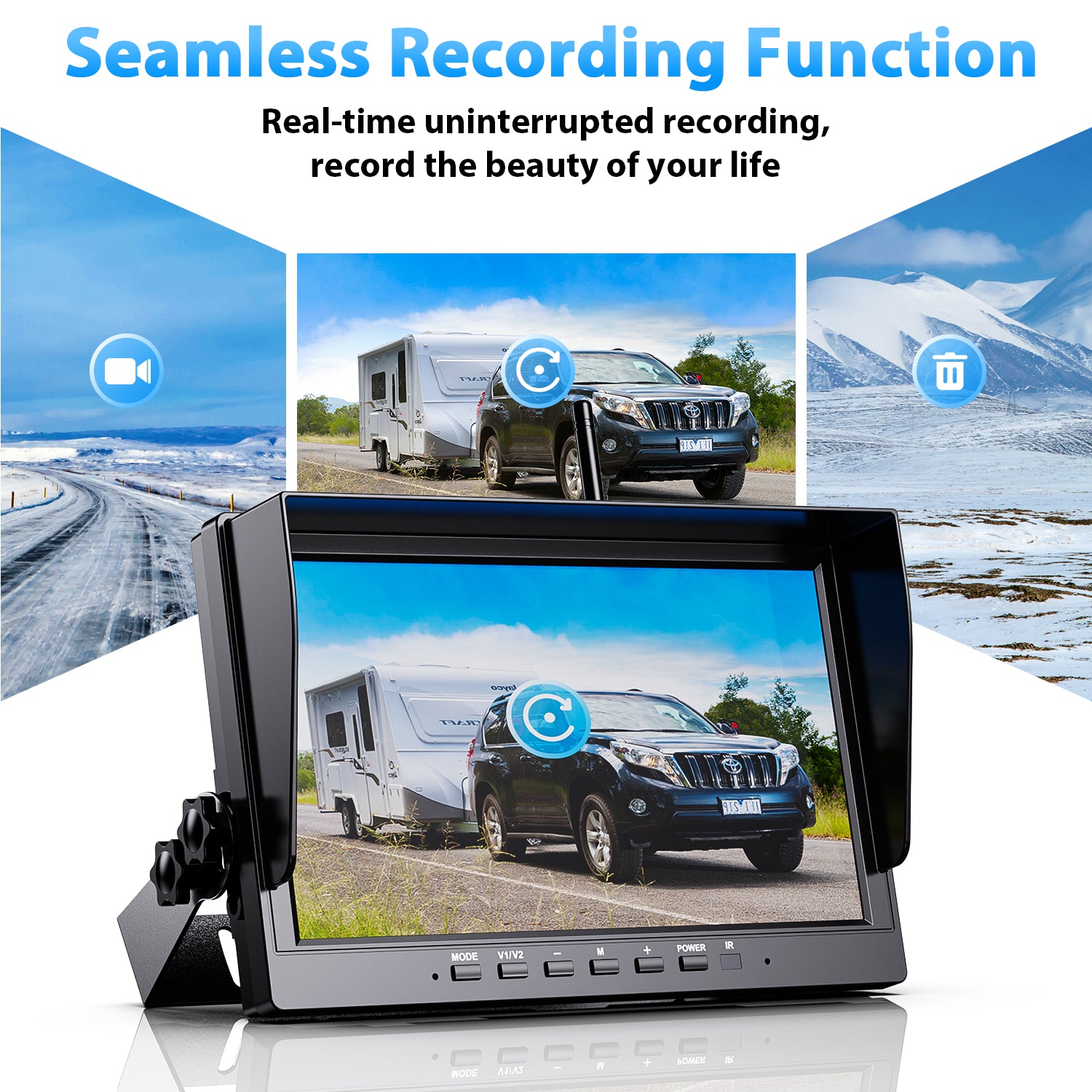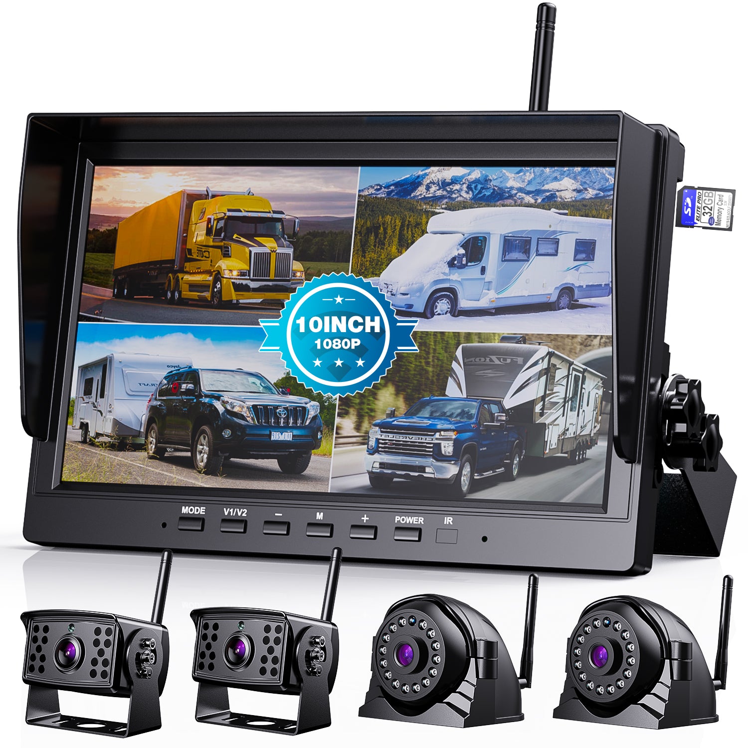 Sistema de cámara de visión trasera inalámbrica HD 1080P de 10" con cuatro cámaras.