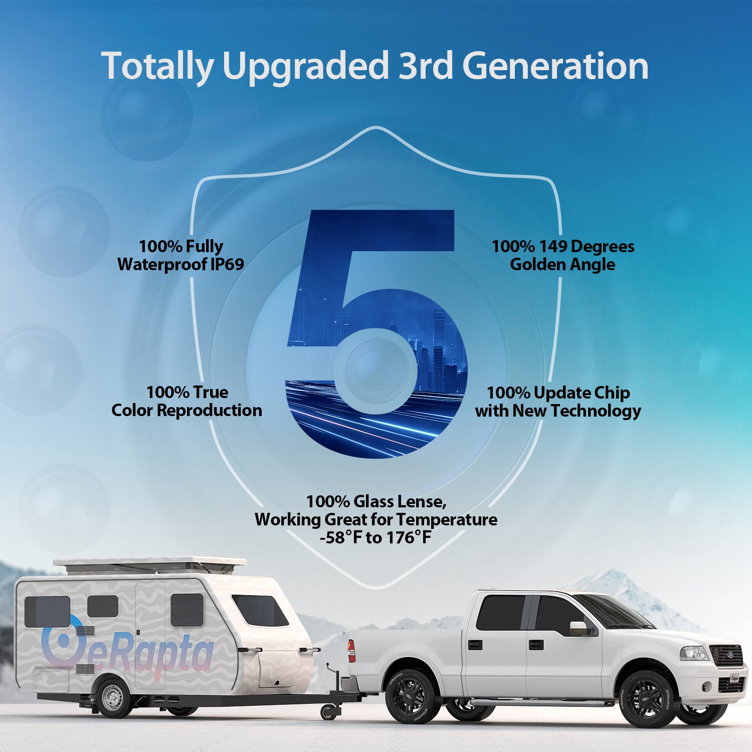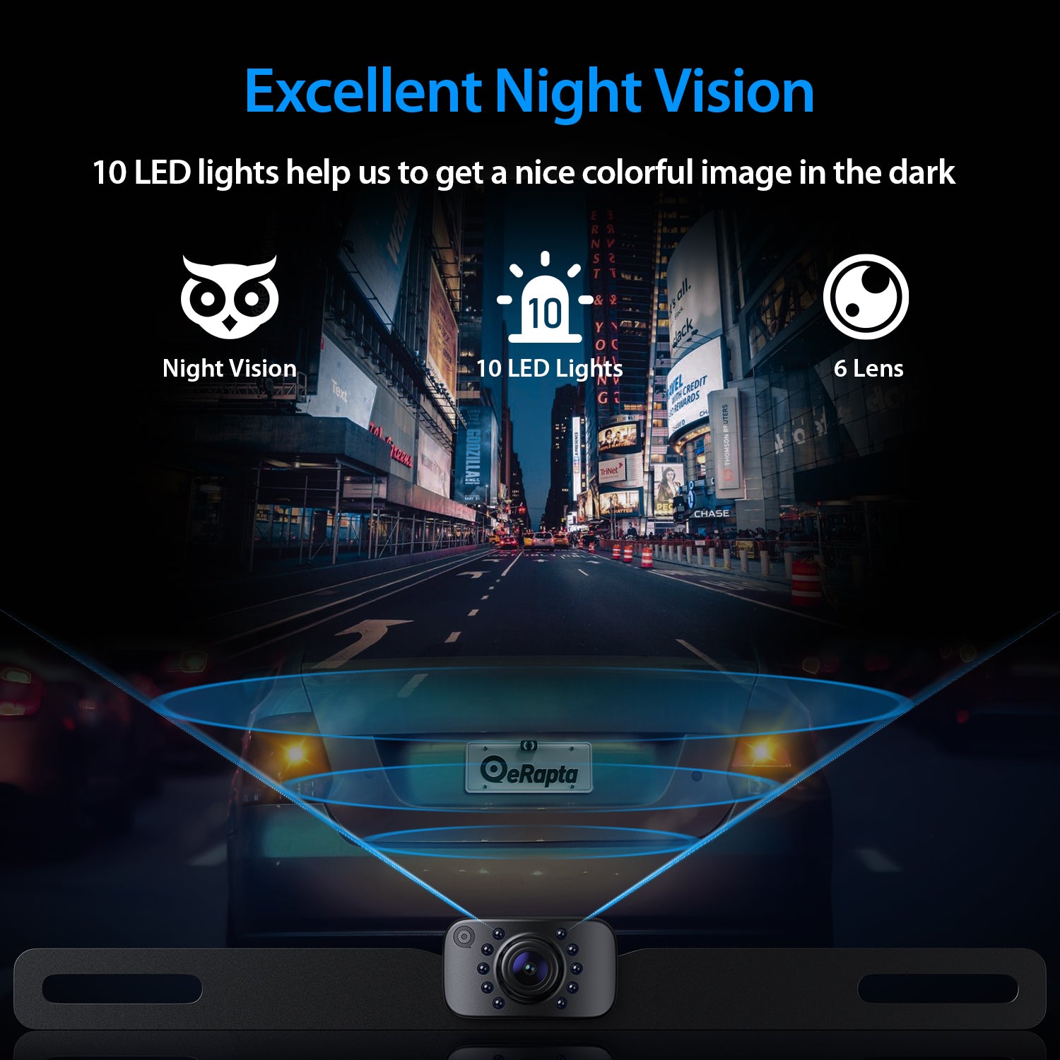 - 149° reversing camera standard IP 69 waterproof performance and night vision function , with automatic lighting LED lights , make your night driving safer .
